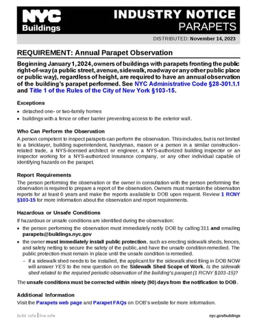All property owners of buildings with parapets in New York City are required to comply with Local Law 126. This includes both residential and commercial buildings.